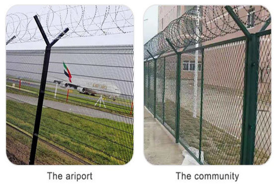 Airport Fence, also known as "Y-Shape security fence", is a kind of strong and secure structure. It is made by combining the v-shaped support arm, welded mesh, security fittings and hot-dip galvanized concertina razor wire.