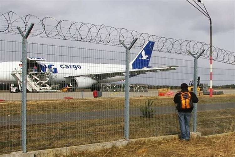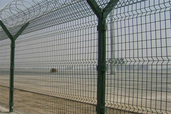 The panel of our airport security fencing is constructed using high quality low carbon steel wire. It is then welded together by a computer controlled machine, ensuring precision and durability. The welded points have a high tensile strength, making them strong and resistant to impact. Additionally, the panel is designed with V-beams which enhance its ability to withstand force.